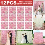 12PCS Artificial Flowers Roses Wall Panel 3D Flower Backdrop Faux Roses for Wall Party Wedding Bridal Shower Outdoor Decoration