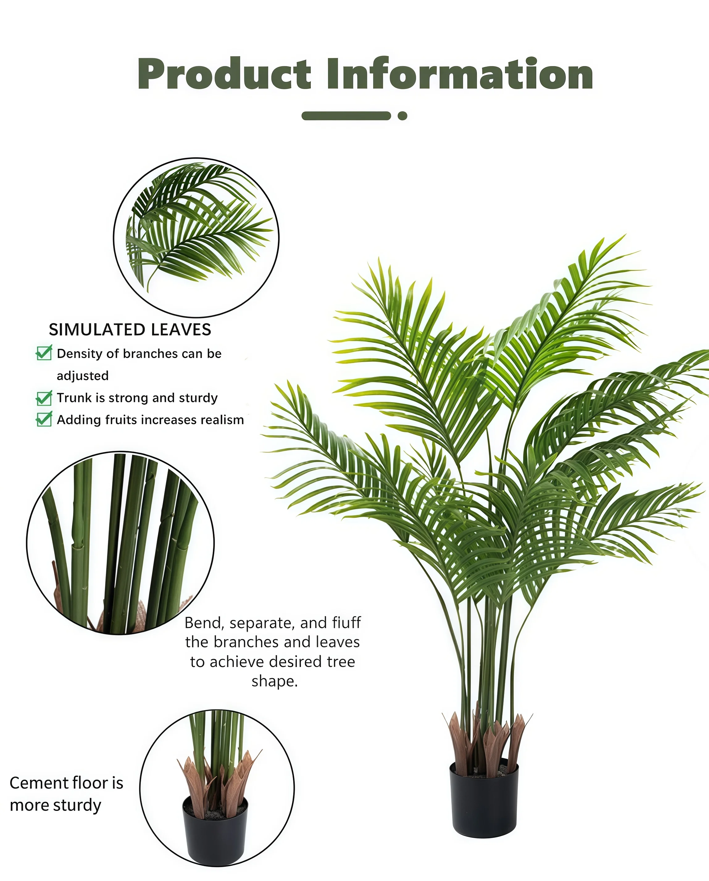 130cm Large Artificial Palm Tree with pot Tropical Fake Plants Areca Palm Tree Decoration for Indoor and Outdoor Living Room