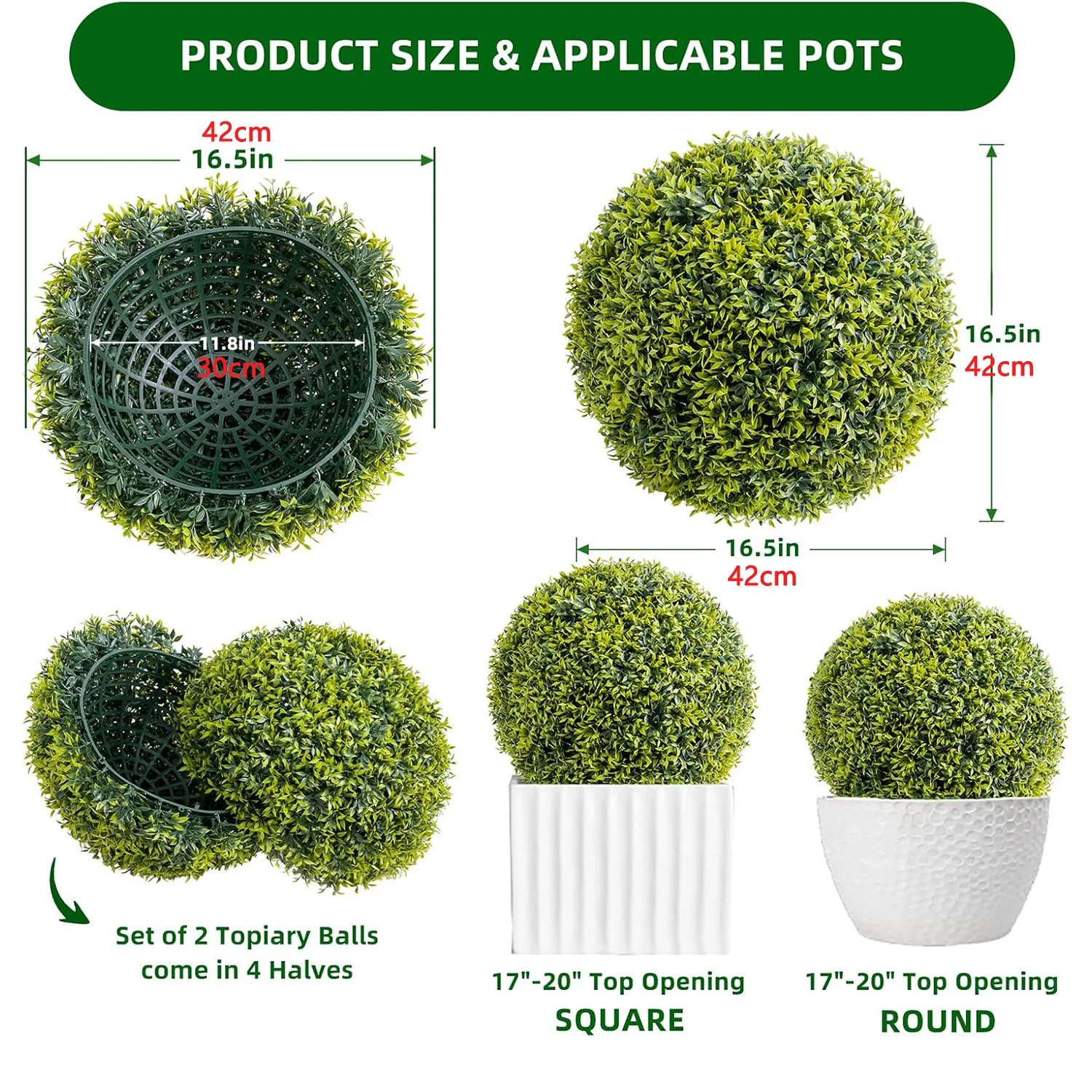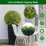 2pcs Artificial Plant Topiary Ball Faux Boxwood Decorative Balls Greenery Hanging Balls for Backyard Balcony Wedding Home Decor