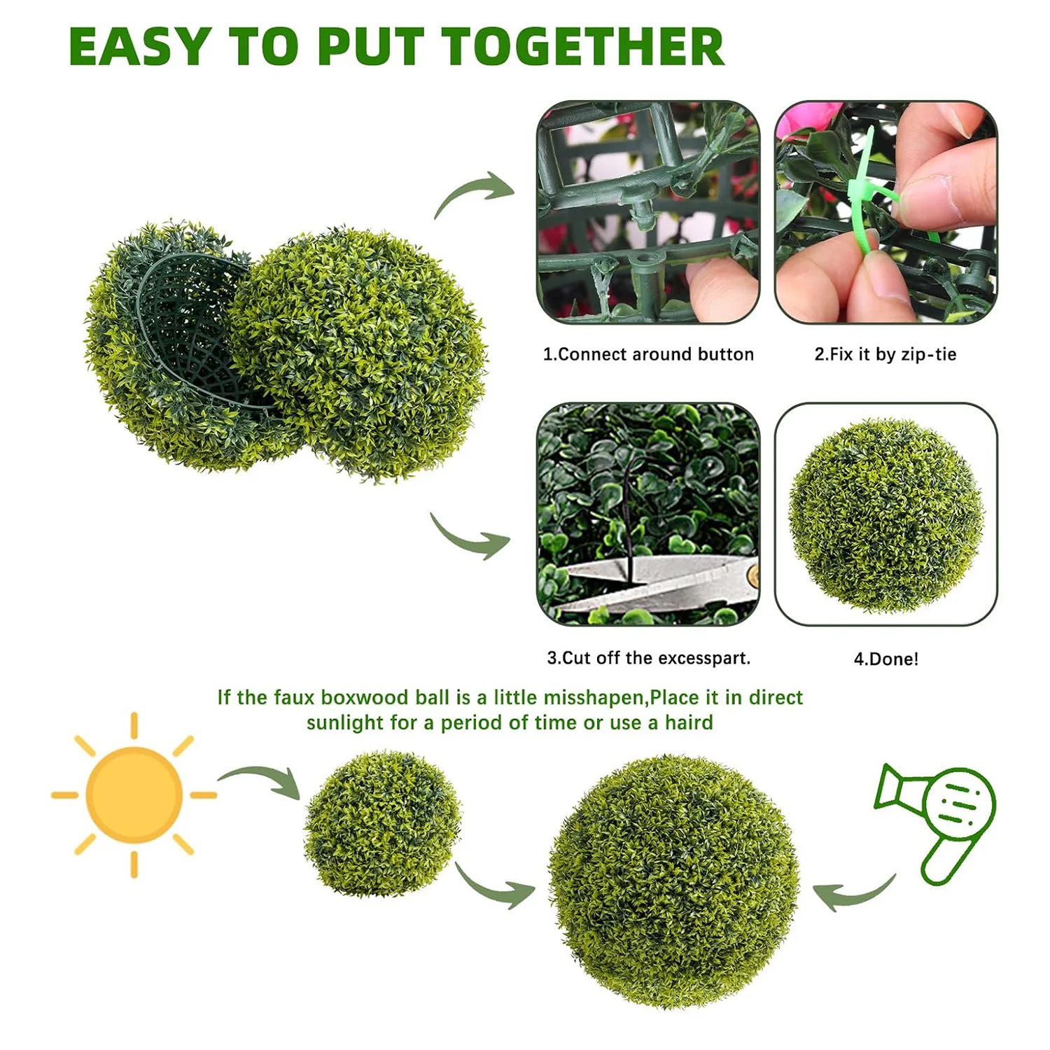 EASY TO USE: There are 20 zip tiles and 2 hanging chains in the package which can provide you various ways to show them. Each artificial plant ball consists of 2 easy-to-assemble half circles connected by 8 clips. If the item is slightly deformed due to shipping, please trim the leaves to restore the shape.