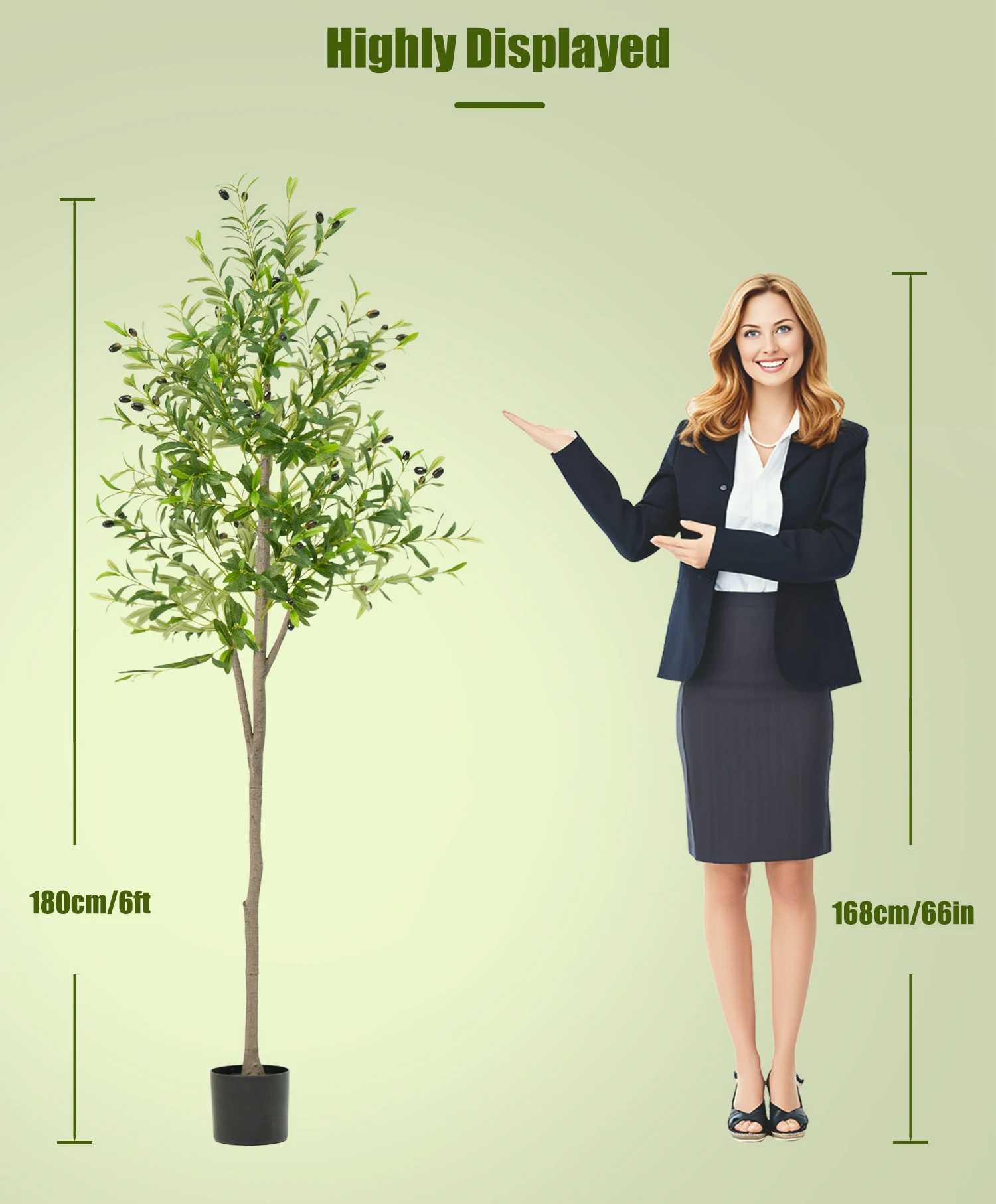 4.180 cm/ 70.86 in high olive tree is perfect for interior decoration. It is an ideal choice for decorating living rooms, bedrooms, reading rooms, restaurants and offices, and is also very suitable for entrances, terraces and commercial places such as bookstores and coffee shops.