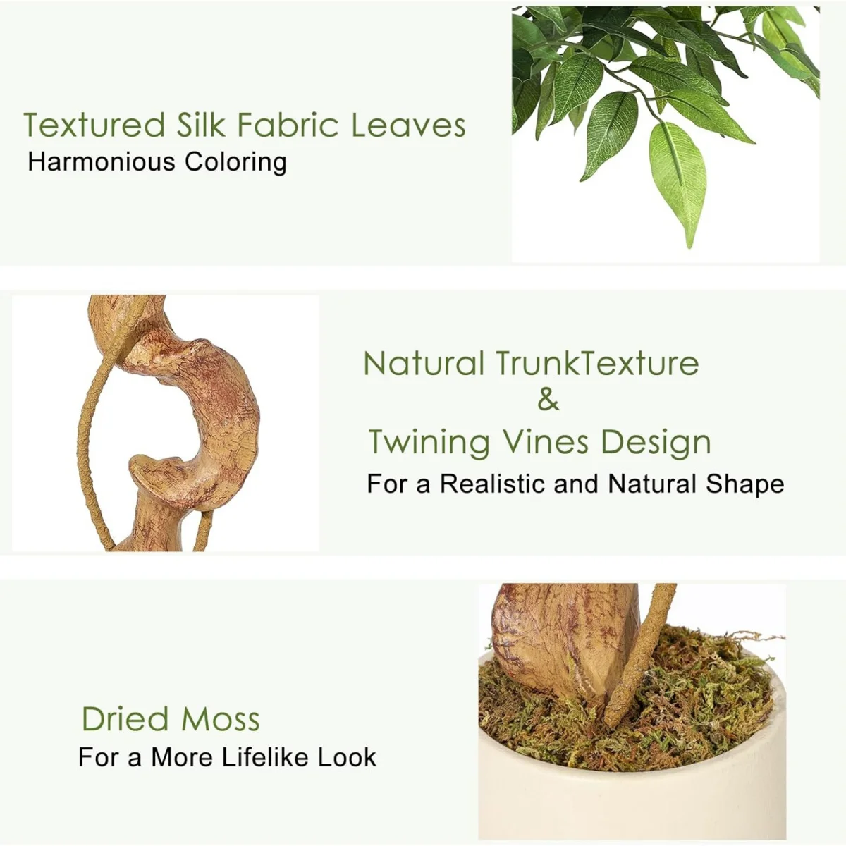 Esileht Kodule Seinakaunistused Ficus Artificial Tree with Curved Trunk Faux Plant Fake Tree with Pot,Fake Ficus Tree for Home Decor,Indoor Outdoor Living Room
