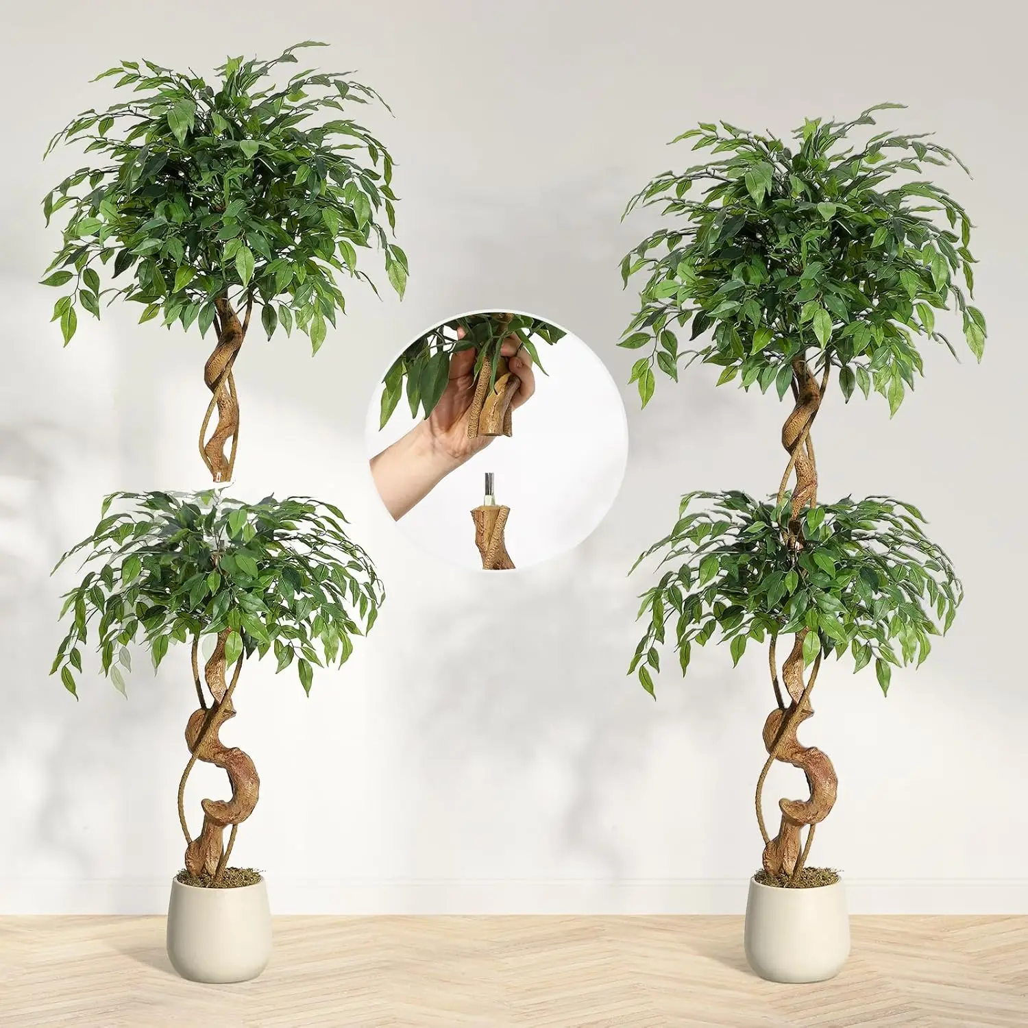 Ficus Artificial Tree with Curved Trunk Faux Plant Fake Tree with Pot,Fake Ficus Tree for Home Decor,Indoor Outdoor Living Room