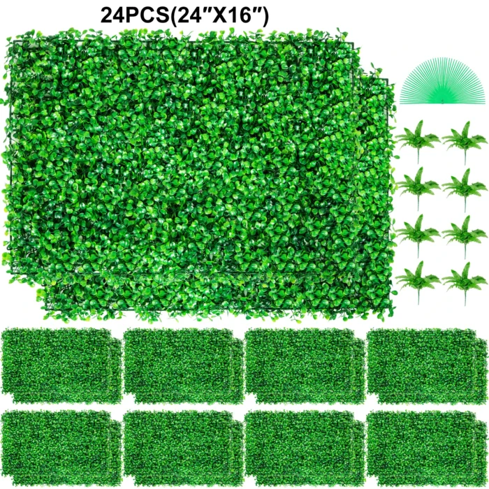 Green Indoor & Outdoor: Get ready to create the perfect space. We have provided extra artificial flowers for breathtaking beauty. The boxwood hedge wall panel is essential for creating a unique environment. Whether you are at birthday parties, weddings, banquets, offices, bars, or home, your new backdrop will make a great addition. It is also the perfect choice for photo walls or greenery backgrounds.