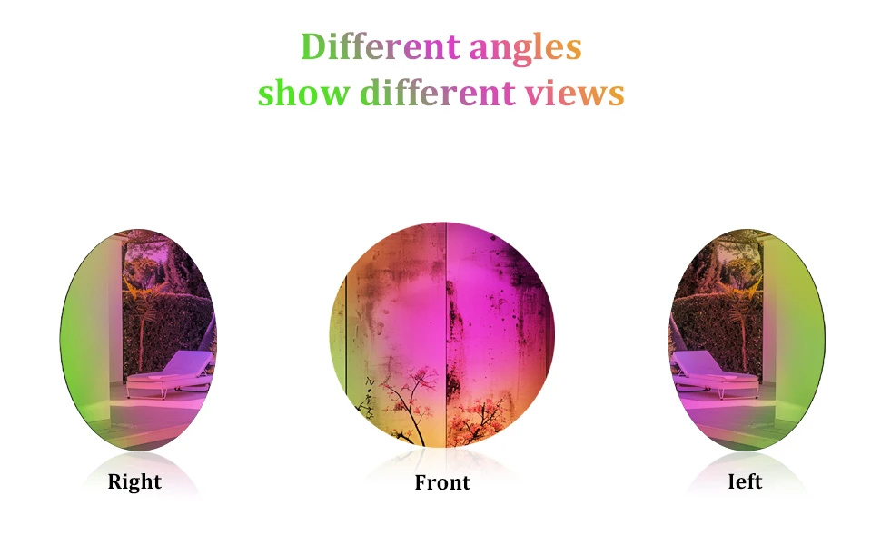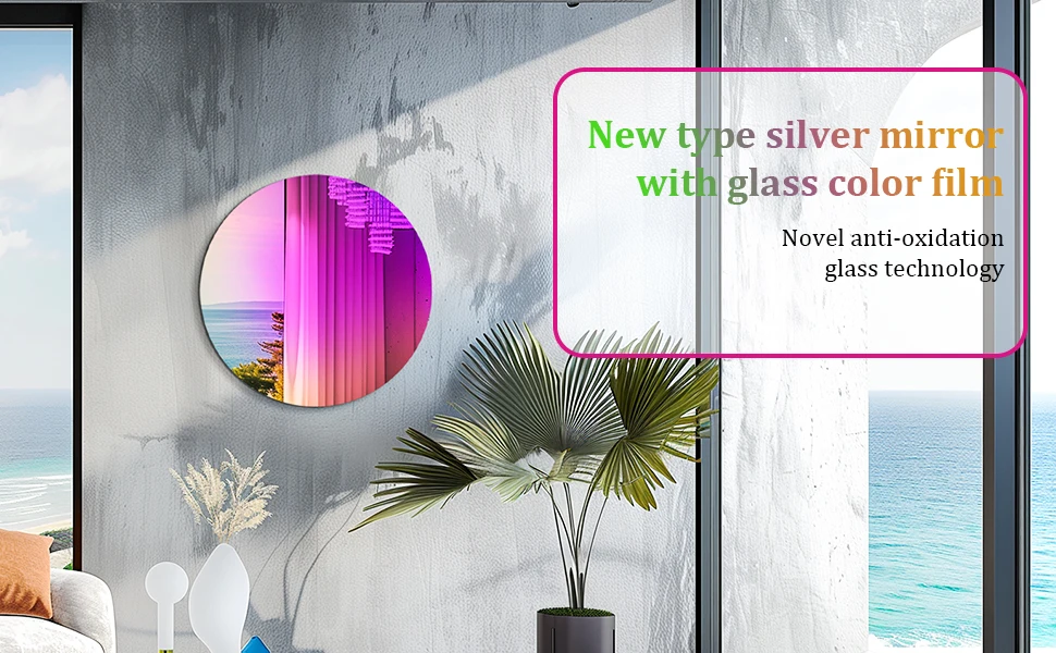 The mirror presents a colorful and transparent appearance, turning all reflections into dreamy rainbow hues. Made of 5mm high-definition anti-oxidation glass, it ensures long-lasting use. The back of the mirror is equipped with explosion-proof film to prevent glass splinters in the event of external impact, ensuring beauty, brilliance, and safety.