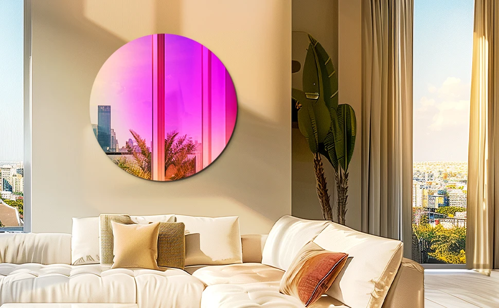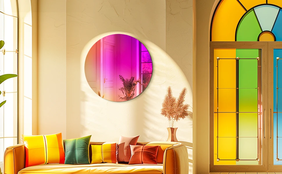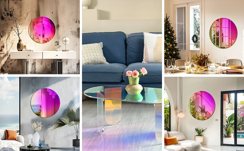Rainbow decorative mirror features unique neon colors, as if every gaze could transcend time and space, merging into the dreamy rainbow, bringing an unprecedented visual spectacle to your home space, becoming the attraction of your home wall decor.
